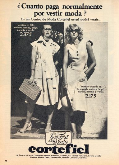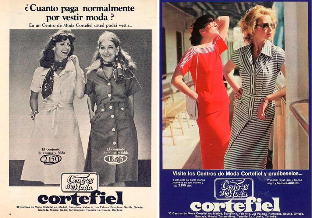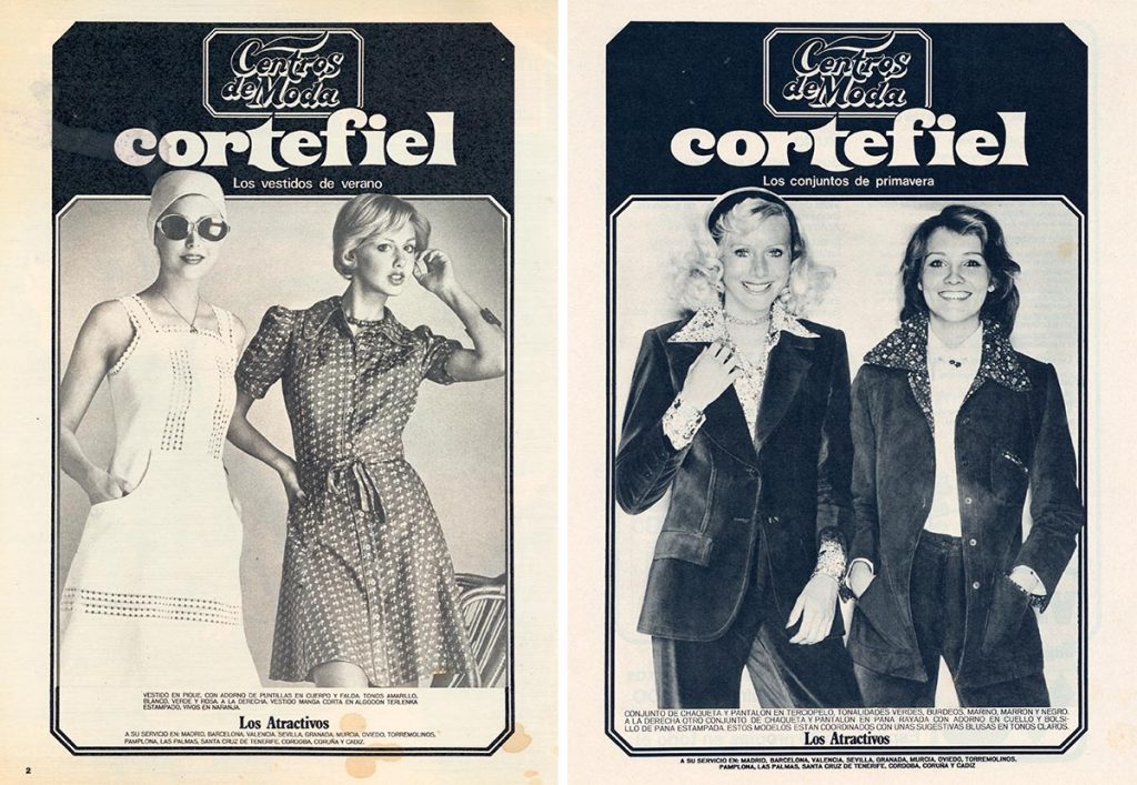 La moda para la mujer de Cortefiel es la moda que siempre sienta bien. Ejemplos de carteles publicitarios de la marca de los años 70.